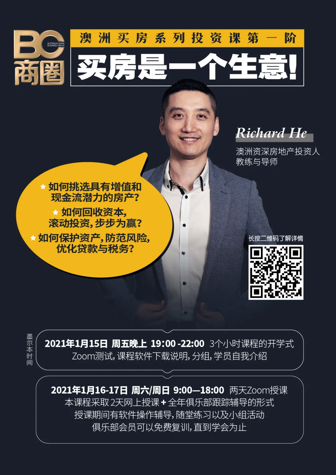 阅读推荐:2021重磅开局!1月9日免费公开课!澳洲买房系列投资课程隆重开启!16-17日不容错过!