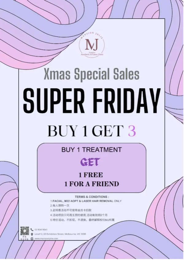 By adminDecember 7, 2023亲爱的朋友们,圣诞新年即将到来,你的肌肤是否已经做好准备,迎接这个充满光彩的时刻呢?✨ 今天,我们精心为您准备了一场绝对不可错过的特惠活动,让您在这温馨的季节中尽展自信光芒!🌟 不容错过的独特优惠等着您,让我们一同为您的肌肤注入圣诞的灿烂和温暖! 🎁 狂欢特惠一:特别超级定制面部护理 & M22光子嫩肤(买一得三!) 在本次活动中,购买我们的Facial或M22光子嫩肤项目,即可享受买1得3的超值优惠!让你在圣诞聚会上成为焦点,散发迷人光彩!💆♀💖 M22光子嫩肤,焕发肌肤的多重魅力:细腻质感、肤色透亮、色斑淡化、毛孔紧致,助力胶原蛋白生成,缓解炎症,为您呈现柔滑光泽。 ✨ Facial护肤项目,尊享国际护肤品牌呵护: LDM德国水滴提升 菲洛嘉肌肤灌注 Medik8补水修复 Skeyndor水光肌护理 以上护肤项目为您带来的不仅是护理,更是一场肌肤的奢华体验。💆♀💖 欢迎您莅临,感受独特的美肤之旅芒! 🎄 狂欢特惠二:热玛吉终极折扣 热玛吉(Thermage)是一种采用射频能量的非侵入性皮肤紧致技术,无需切割或注射,降低手术风险,缩短术后恢复时间。 🌟 通过精准传递射频能量至皮肤深层,热玛吉激发胶原蛋白的自然收缩和再生,带您感受紧致之美。重塑面部轮廓,减轻眼袋松弛,平滑细纹、皱纹,抚平松弛和下垂,呈现焕然一新的年轻光采。💆♀ ✨ 热玛吉,不仅是美肤的技术,更是对您肌肤的温柔呵护,让您散发自信美丽。欢迎莅临,体验独特的时光回归之旅!起航! ...