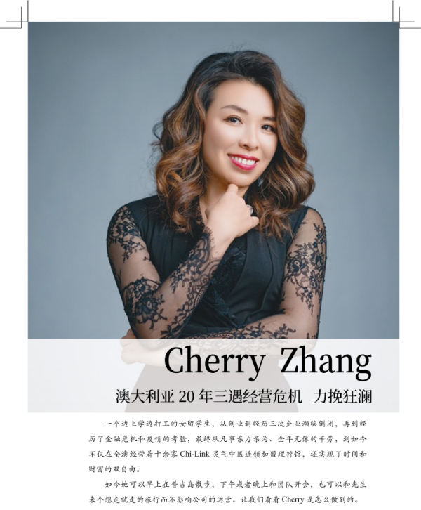 By adminNovember 19, 2023一个边上学边打工的女留学生,从创业到经历三次企业濒临倒闭,再到经历了金融危机和疫情的考验,最终从凡事亲力亲为、全年无休的辛劳,到如今不仅在全澳经营着十余家 Chi-Link 灵气中医连锁加盟理疗馆,还实现了时间和财富的双自由。如今她可以早上在普吉岛散步,下午或者晚上和团队开会,也可以和先生来个想走就走的旅行而不影响公司的运营。让我们看看 Cherry 是怎么做到的。 堂堂硕士弯腰为人按摩,想要创业就不怕失面子 cherry出生于天津 ,父母是印度尼西亚归国华侨。高考失利是cherry遇到的人生中第一个坎儿,本来有实力考入南开大学却直接掉到二本的 “天津中医学院” 。大学毕业时又赶上第一回学校不包分配工作。她想到了出国留学,于是在 1999年来到了位于澳大利亚布里斯班的格里菲斯大学学习金融和会计。 因为是靠父母借钱才交齐学费的 ,所以cherry利用课余时间打零工,像是厨房帮工、酒楼推点心、前台,她都做过。 2001年cherry顺利毕业并拿到PR。她本来可以去找一份白领工作 ,但是她不喜欢朝九晚五的生活,甚至决定去按摩店打工。很多人不理解 ,一个堂堂的中国 5年中医针灸本科生和澳大利亚金融硕士,为什么选择去按摩店给人家按脚按腿,有的朋友甚至表示同情。但其实是cherry很想借着这样的锻炼 ,以后自己开家中医理疗馆,让西人了解中医,了解经络 ,了解穴位,让中医在海外发扬光大。 念念不忘,必有回响, 2003年按摩店老板开分店,她成为合伙人。 2004年又和先生独自创业。 第一次经营危机: 一步一个坑,用钱换来经验 2004年,cherry离开悉尼,到布里斯班开了第一家在购物中心的理疗馆,不到30平方米,只有 5张按摩床。开业的第一天,她和先生一大早就一起憧憬着客人络绎不绝地进来,心满意足地离开。但是理想很美好,现实很骨感 ,第一天开张就吃了一个 “大鸭蛋”——营业额为零,因为当时在布里斯班还没有这样设在购物中心的理疗馆,顾客根本不知道她的店是做什么的。这样的日子不是一天...